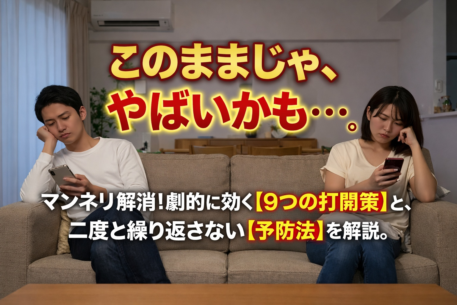 マンネリ化を解消するためにやるべきこととは何か、マンネリの解消法をご紹介します。