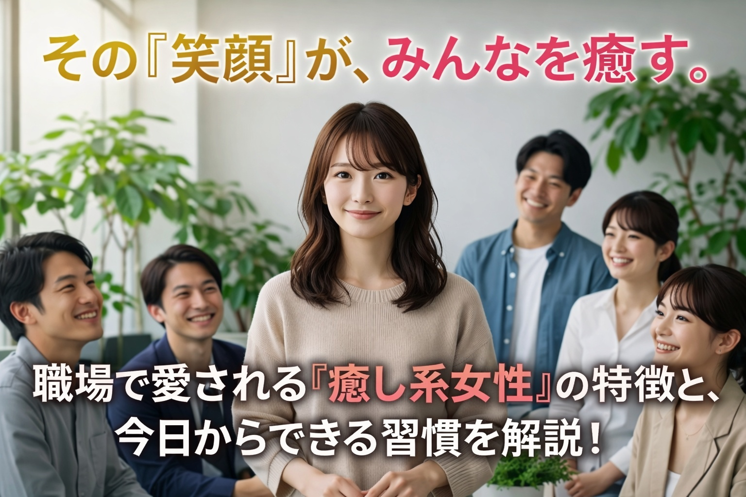 大事なのは、同性である女性に対しても悪い印象を与えないこと。癒し系は、男女問わず可愛がられる存在であることが重要なポイントです。