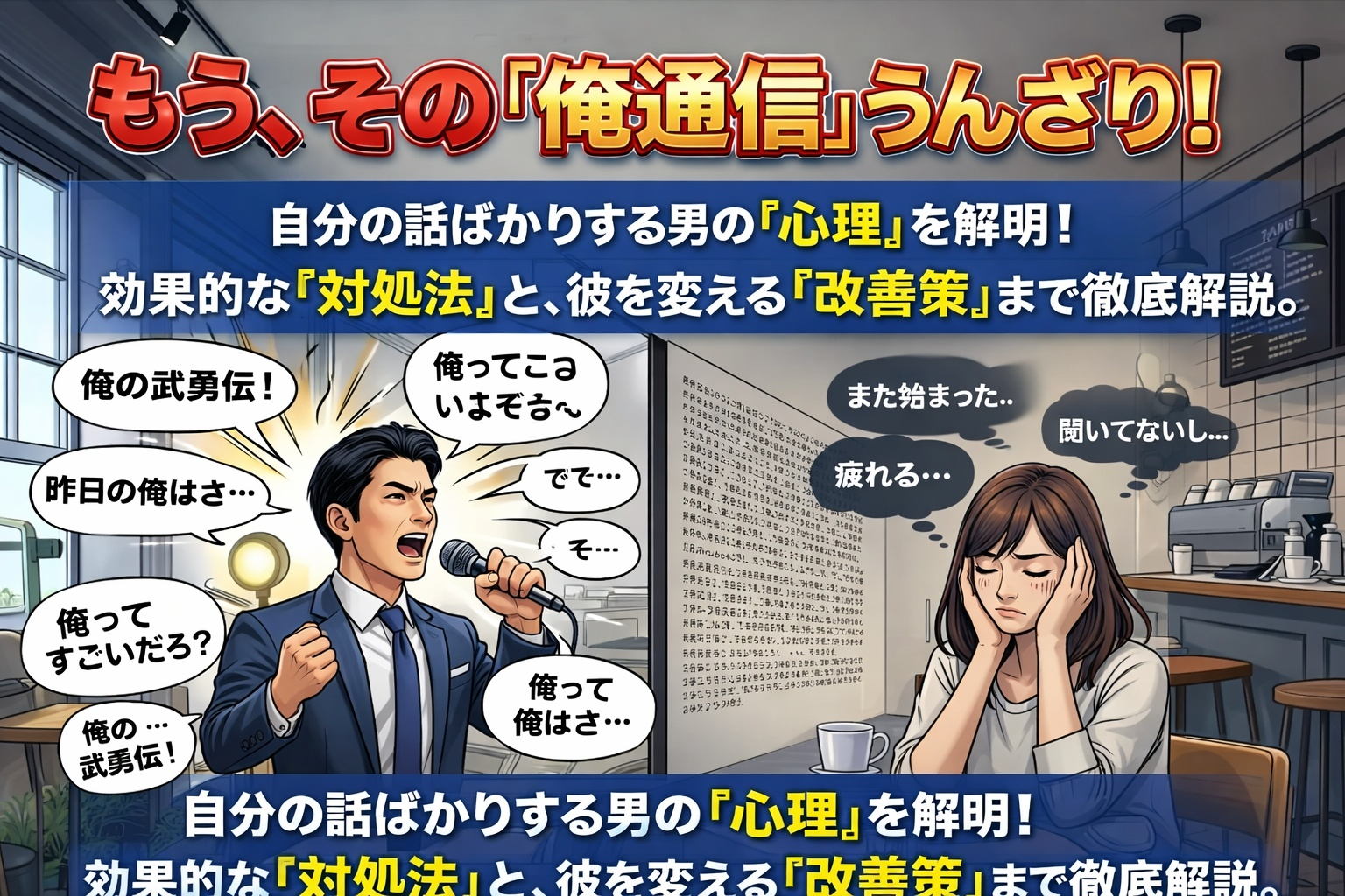 自分の話ばかりする男の心理&特徴。効果的な対処法と改善方法も解説!