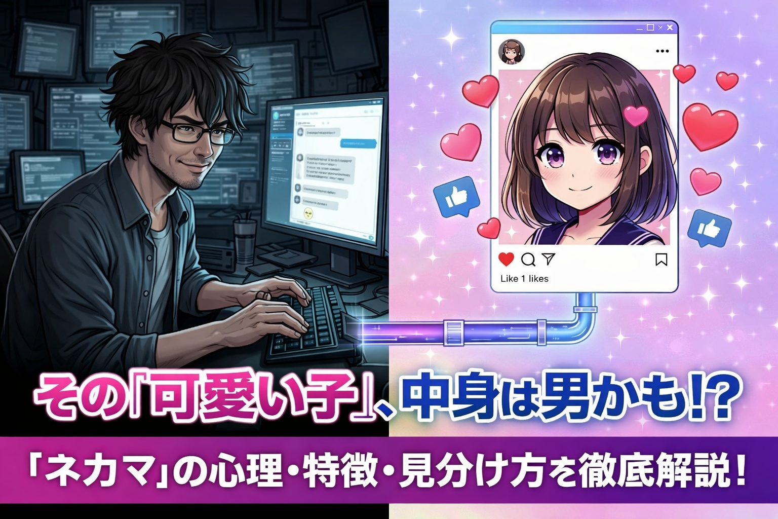 現実世界の性別とは違う性別でインターネットを楽しむネカマは、SNSにもよく出現します。