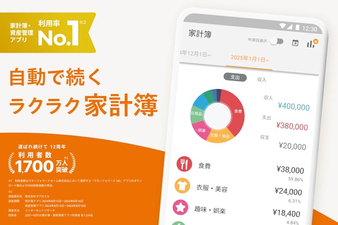 第1位. マネーフォワード ME:お金の動きが分かりやすくて簡単に管理できる!家計の見直しや節約にも役立つNo.1おすすめ家計簿アプリ