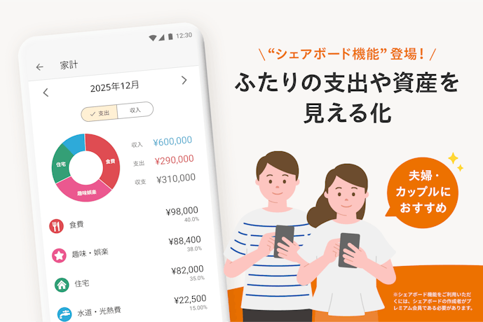 どちらかが立て替えたお金も簡単に精算できる! 夫婦・カップルにおすすめな初心者向け家計簿アプリ |