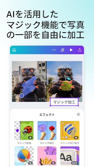 『Canva』は、1億点を超える素材とAIツールで、誰でも手軽に高品質なアイコンを作れる総合デザインアプリ。