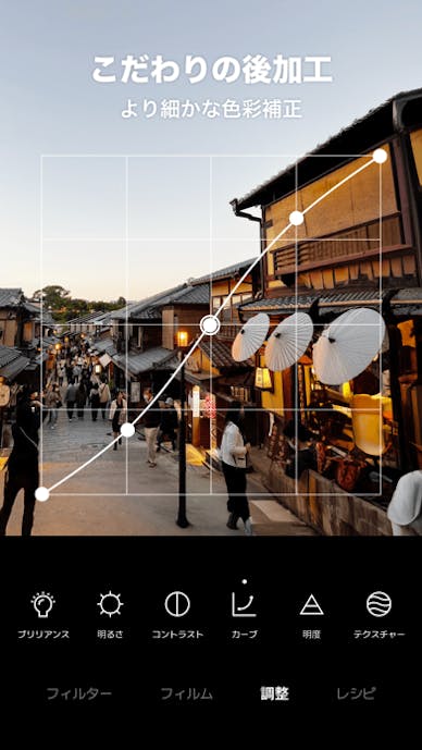 面倒な編集の手間はかからず、ワンタップで編集可能。フィルムの色や質感、ノイズなどを再現でき、温かみのある写真に変えてくれますよ。