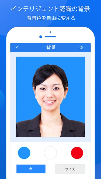 背景色が変えられる機能やスーツなどの服が選べる機能があり、家の中でも立派な証明写真が撮影できますよ。