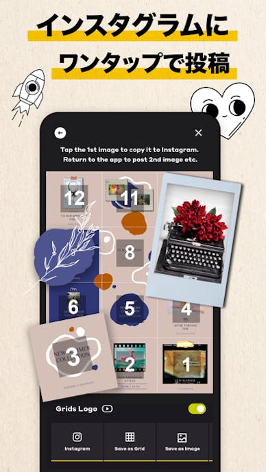 iPhoneユーザーはこちら第6位. Grids:画像を並べるだけで大迫力の1枚画に変身!スマホでグリッド投稿ができる初心者向けアプリ