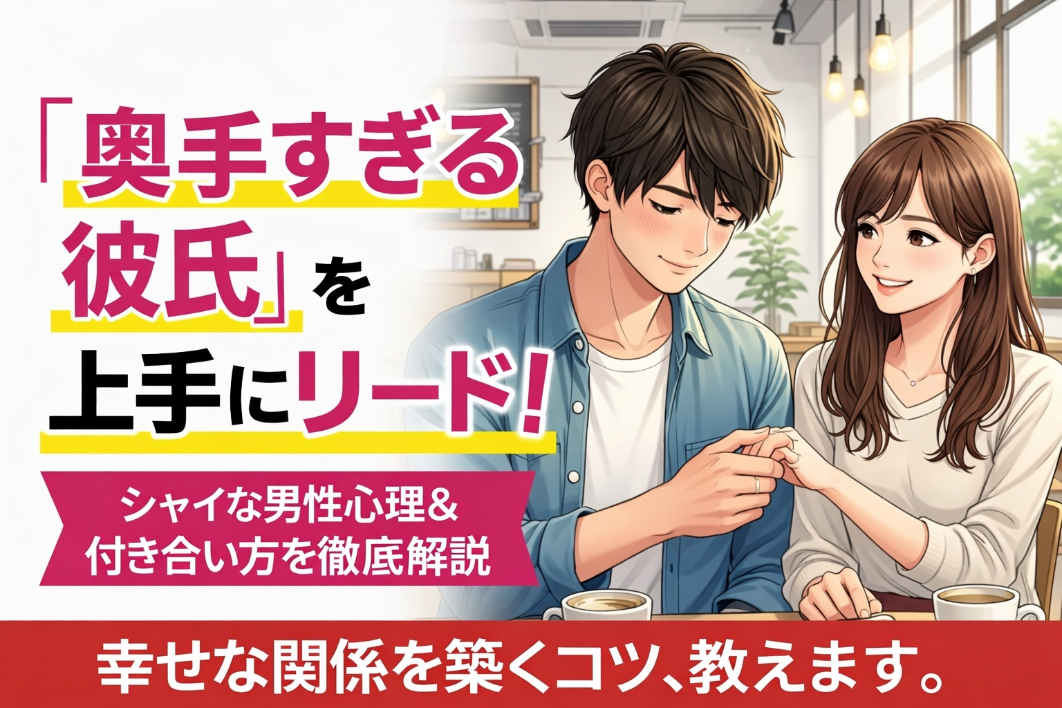 奥手な彼氏は、恋愛自体の経験が少ないため、彼女に対してどのように振舞ったら良いのか、毎回悩んで不安になってしまいがち。