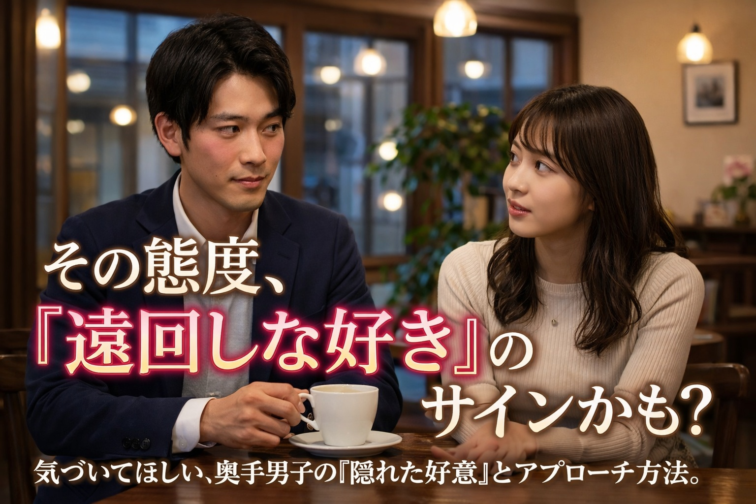 そこで本記事では、男性が好意を遠回しに伝えてくる時のサインを分かりやすく整理しながら、奥手男子特有のアプローチ方法も紹介します。