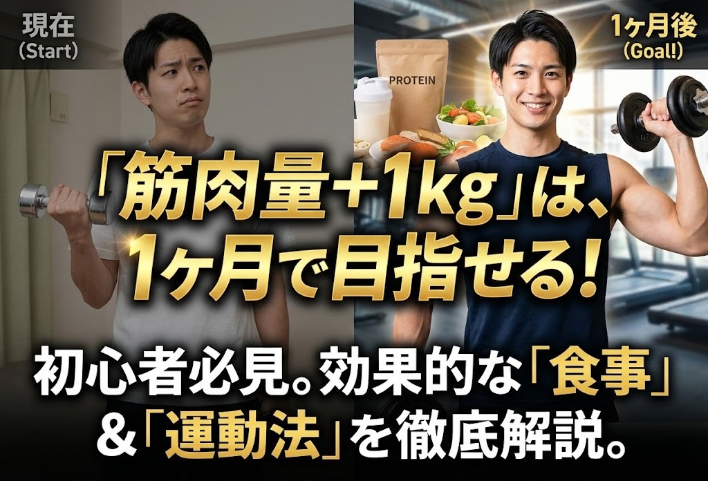 【筋肉量を1kg増やす方法】初心者なら1ヶ月で達成できる?筋肉をつける食事&運動法