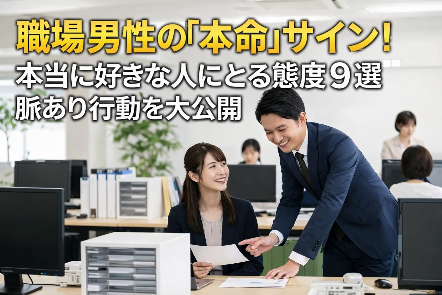 そこで本記事では、職場男性が本当に好きな人にとる態度9つを分かりやすく整理しながら、本命女性に見せる脈あり行動を具体的に紹介します。