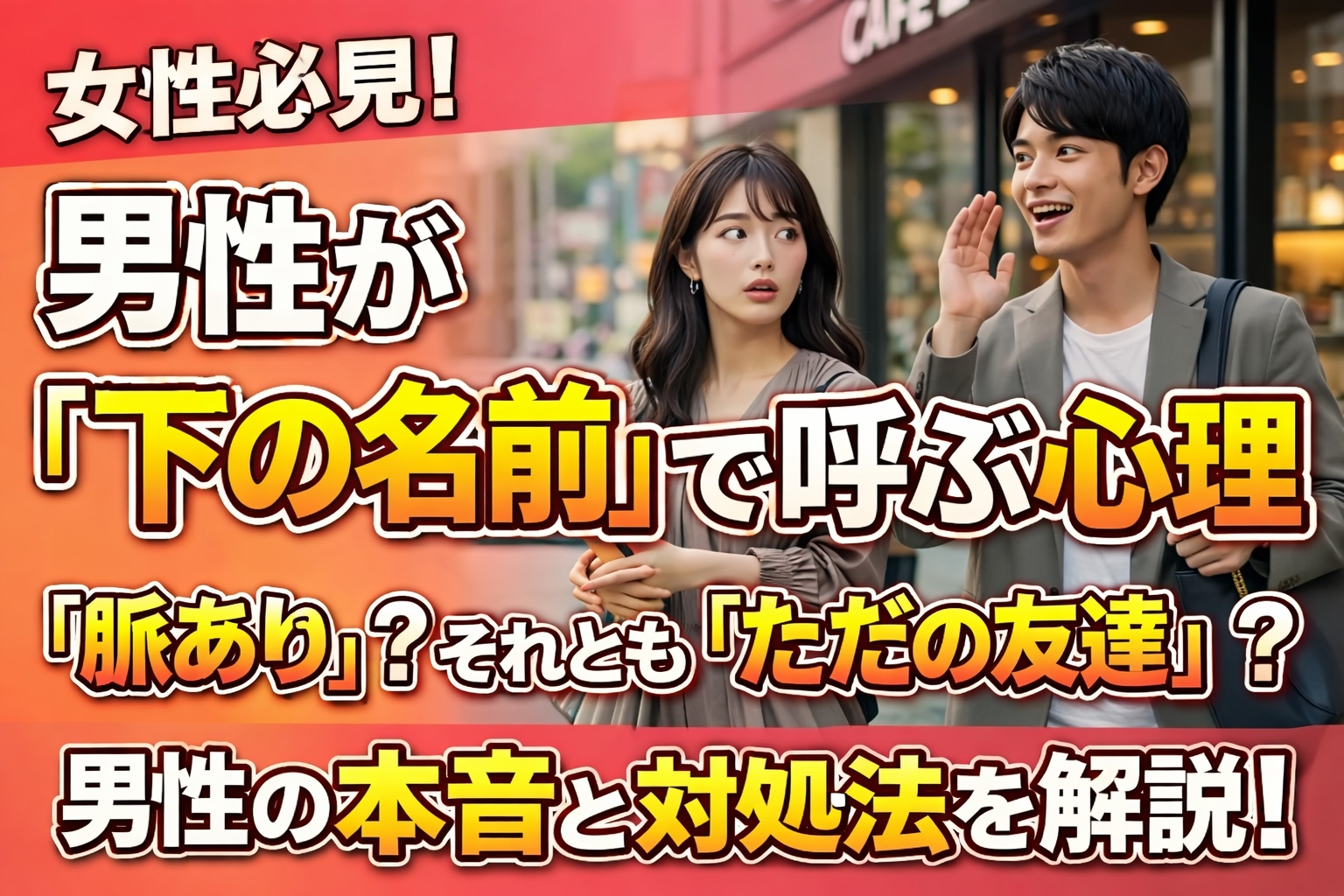 そこで本記事では、女性を下の名前で呼ぶ男性心理を整理しながら、脈ありの見極め方を分かりやすく解説。さらに、やめてほしい時に角が立たない対処法も紹介します。