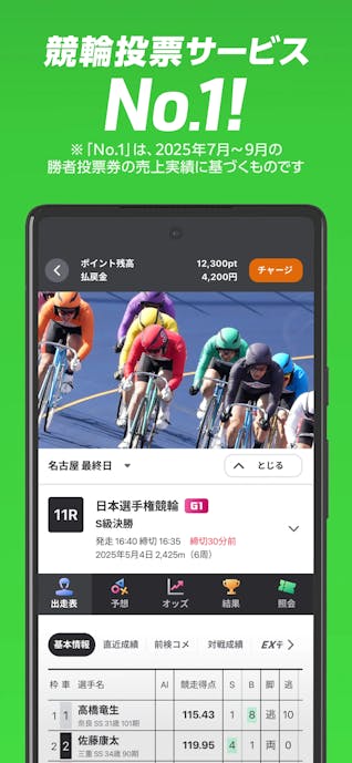 『ウィンチケット』は、定番の競輪アプリ。
