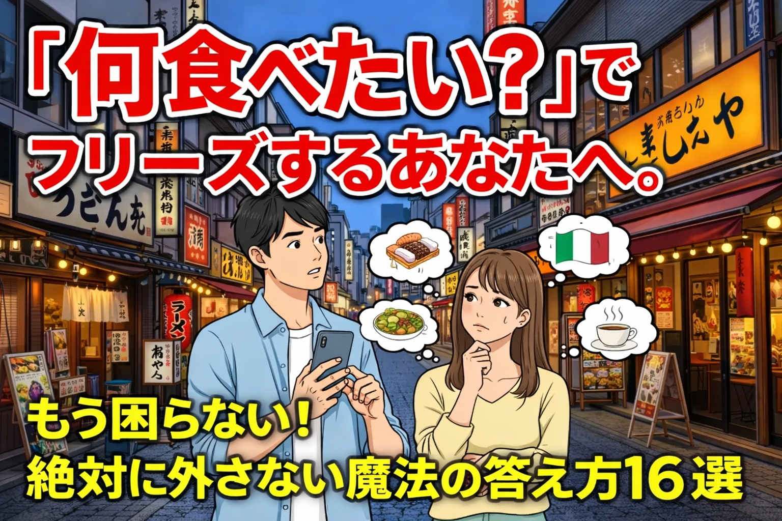そこで、「何食べたい?」と聞かれた時に絶対に試してほしい無難な料理ジャンルや、好印象を持ってもらえる回答例を詳しく解説します。