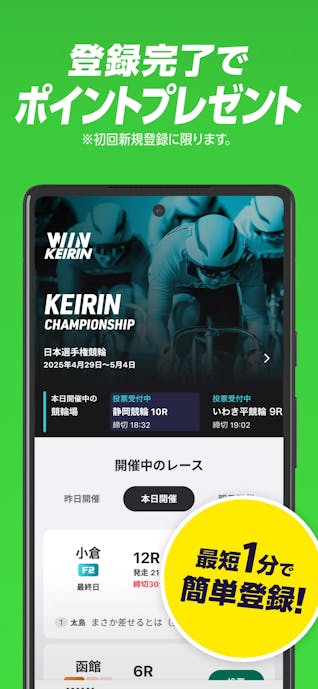 ウィンチケットではスマホ上でレース中継の視聴から、投票券の購入までできるから、会場まで足を運ばずとも競輪が体験できます。