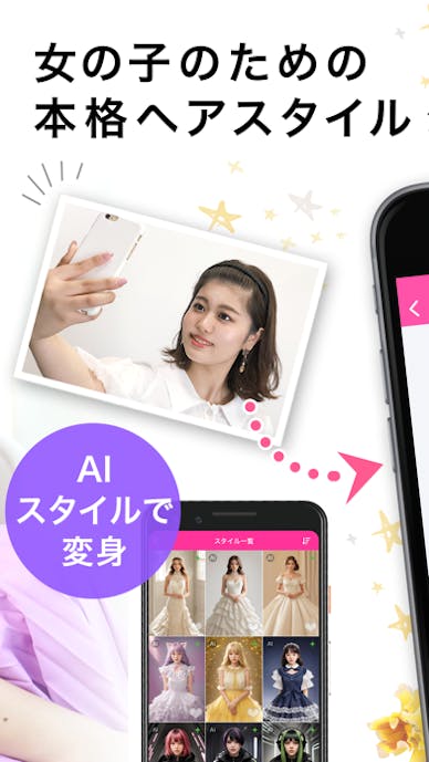 その髪型をすぐにシミュレーションできるのが魅力。日本最大手の美容院 Earth(アース) が監修しているため、美容室に行かなくても、美容師さんに髪型をおすすめしてもらうような気分を味わえるでしょう。