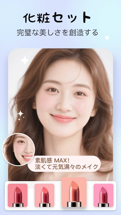 BeautyPlusならただ体型を加工するだけでなく、小顔機能やメイク機能を使って自分の写真を美しくできます。