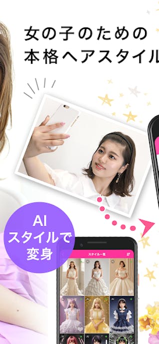 「ヘアスタイル」から顔写真を読み込み、気になるヘアスタイルをタップするだけで、AIが自動合成してくれます。