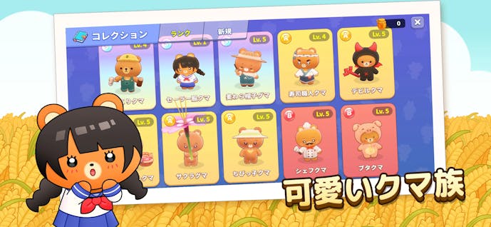 クマ族の仲間を配置すると報酬が増え、村づくりが自然と進行。