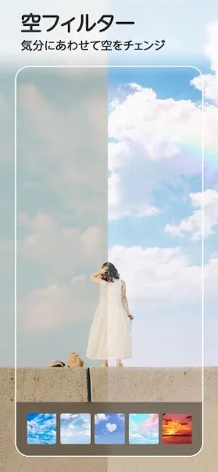 肌レタッチを軽くかけるだけで服まで全体が明るく見えるのに驚きました! 写真全体が整うから、シワを直接触らなくてもきれいに写るアプリです!