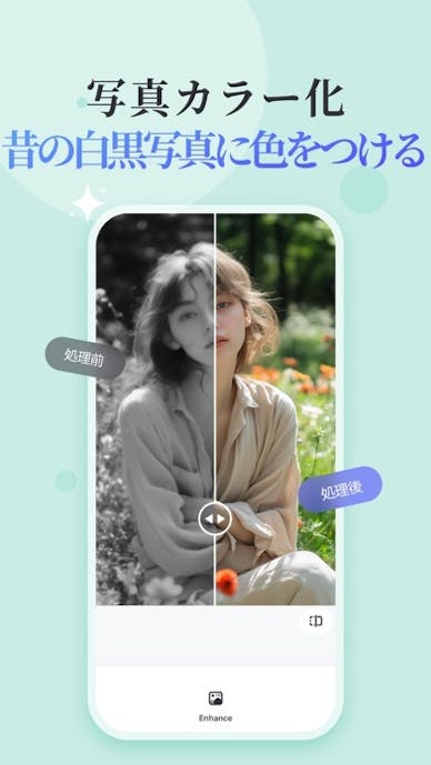 SNS用の一枚を綺麗に準備したい場面で使いやすく、画質改善や色味調整など基本機能もそろっています。